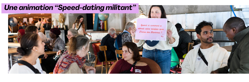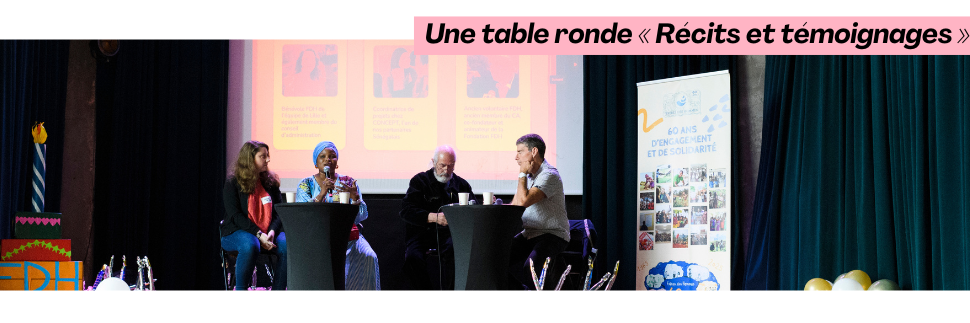 Cette date était dédiée à la rencontre entre tou·te·s nos militant·e·s. Puisqu’en 60 ans, les formes d’engagement ont beaucoup évolué, une large mosaïque de profils différents se sont rencontrés dès le début de la journée avec un brise-glace géant d’interconnaissance. L’après-midi a été rythmée d’interventions sur scène et d’animations pour peindre les différents visages de l’engagement. Pour cela, nous avons mêlé table ronde, vidéos, témoignages et animations. Une exposition photo retraçant l’histoire de FDH était également proposée.