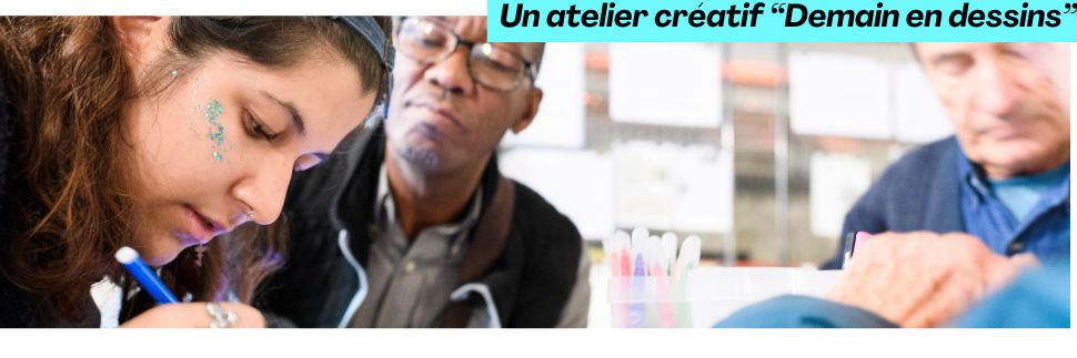 Imaginer le FDH de demain avec unatelier d’expression artistique destiné à compléter notre exposition-photo retraçant nos six décennies de solidarité. L’occasion parfaite de croiser les regards sur l’idée que chacun·e se fait de l’avenir de l’association, notamment dans le cadre de notre projet bénévole “Agir avec le vivant”.