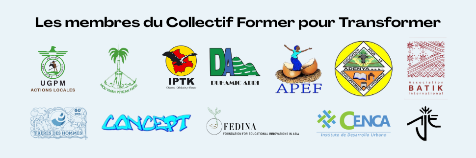 En 2017 est né le collectif “Former pour Transformer“. Aujourd’hui, douze organisations y participent, toutes engagées localement, dans des contextes variés et auprès de personnes en situation de vulnérabilité, avec la formation pour la transformation sociale au cœur de leurs actions. Ce collectif est un espace d’échange de pratiques et de co-production de connaissances entre associations de différents pays. L’idée ? Partager nos pratiques, apprendre les un·es des autres, et co-construire des savoirs utiles pour développer les pouvoirs d’agir.